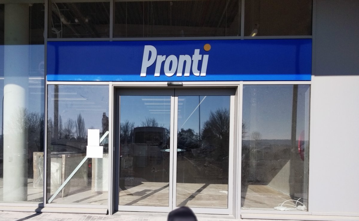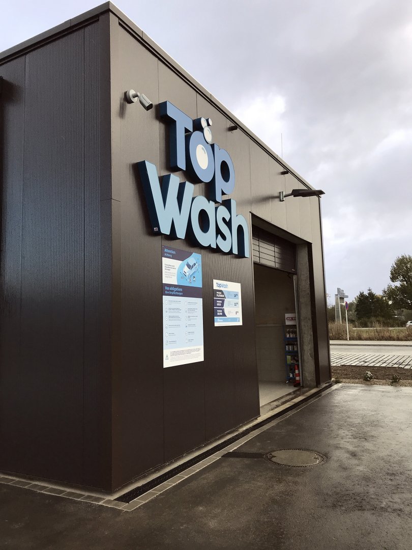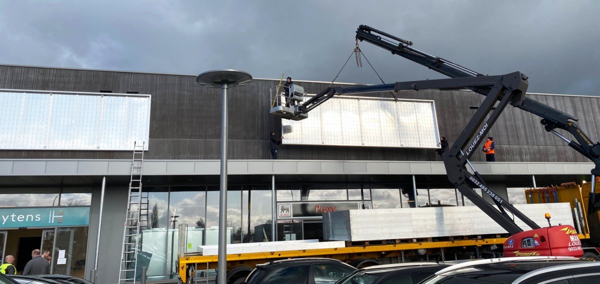 À Pommerloch, nous avons installé une enseigne lumineuse XXL sur la verrière principale, accompagnée d’un habillage de façade en panneaux Trespa Météon couvrant plus de 700 m².